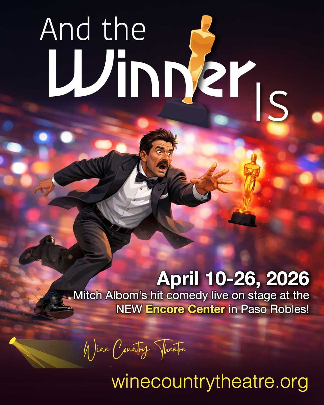 AND THE WINNER IS tells the comic story of Tyler Johnes, a self-obsessed movie star, who is finally nominated for an Oscar, then dies the night before the awards. Outraged at his bad luck and determined to know if he wins (even though he's dead), he bargains with a heavenly gatekeeper to return to earth for the big night. Along the way, he drags his agent, his acting rival, his bombshell girlfriend and his ex-wife into the journey, in a wildly twisting tale of Hollywood, the afterlife, and how we are judged.