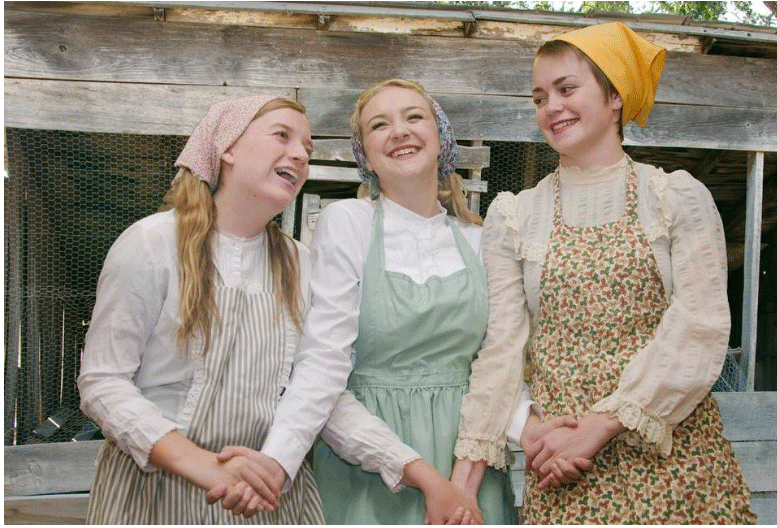 Chaya (Ashlyn Brookshire), Tzeitel (Makenzie Hart) and Hodel (Christina Rogers) seek to break with tradition and marry